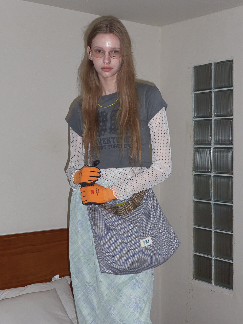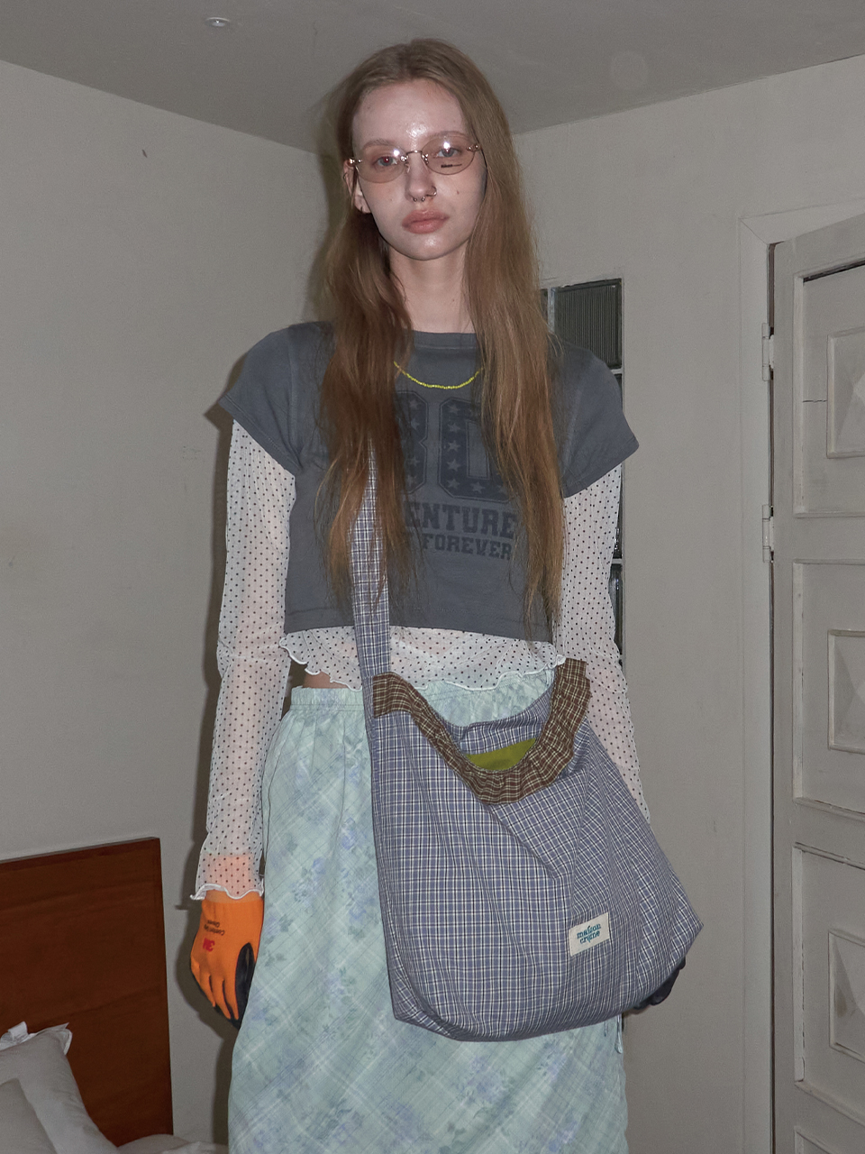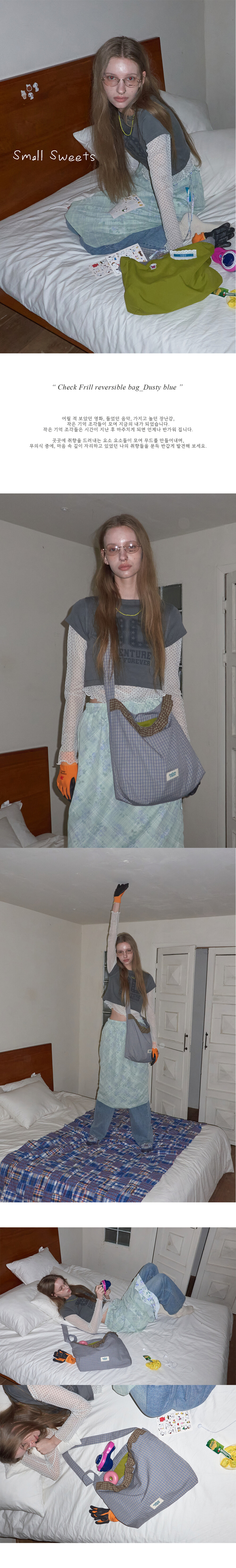 Check Frill reversible bag_Dusty blue
