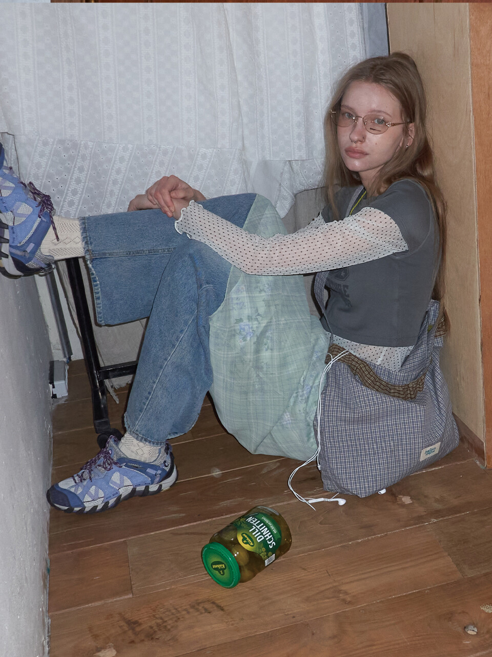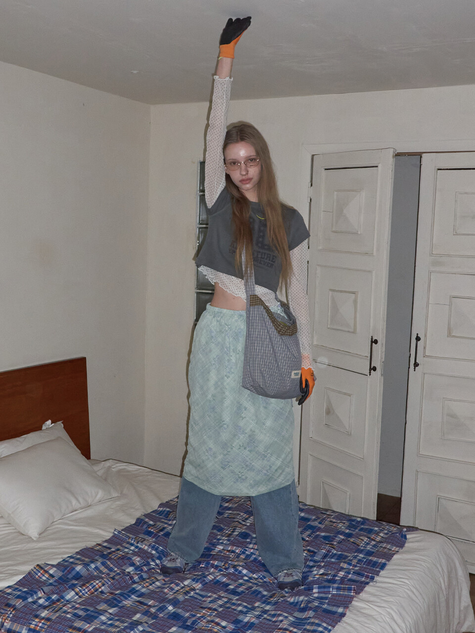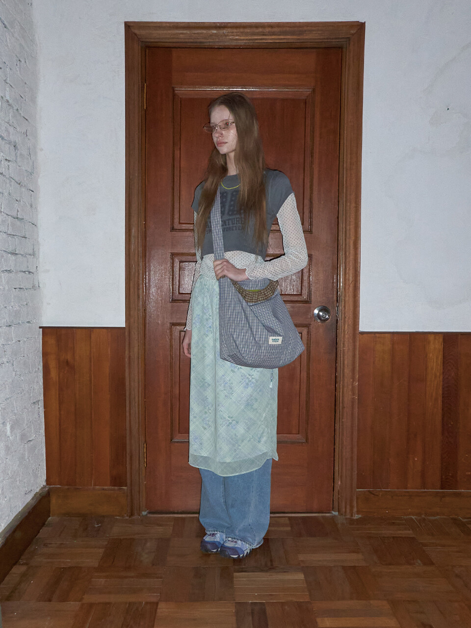 Check Frill reversible bag_Dusty blue