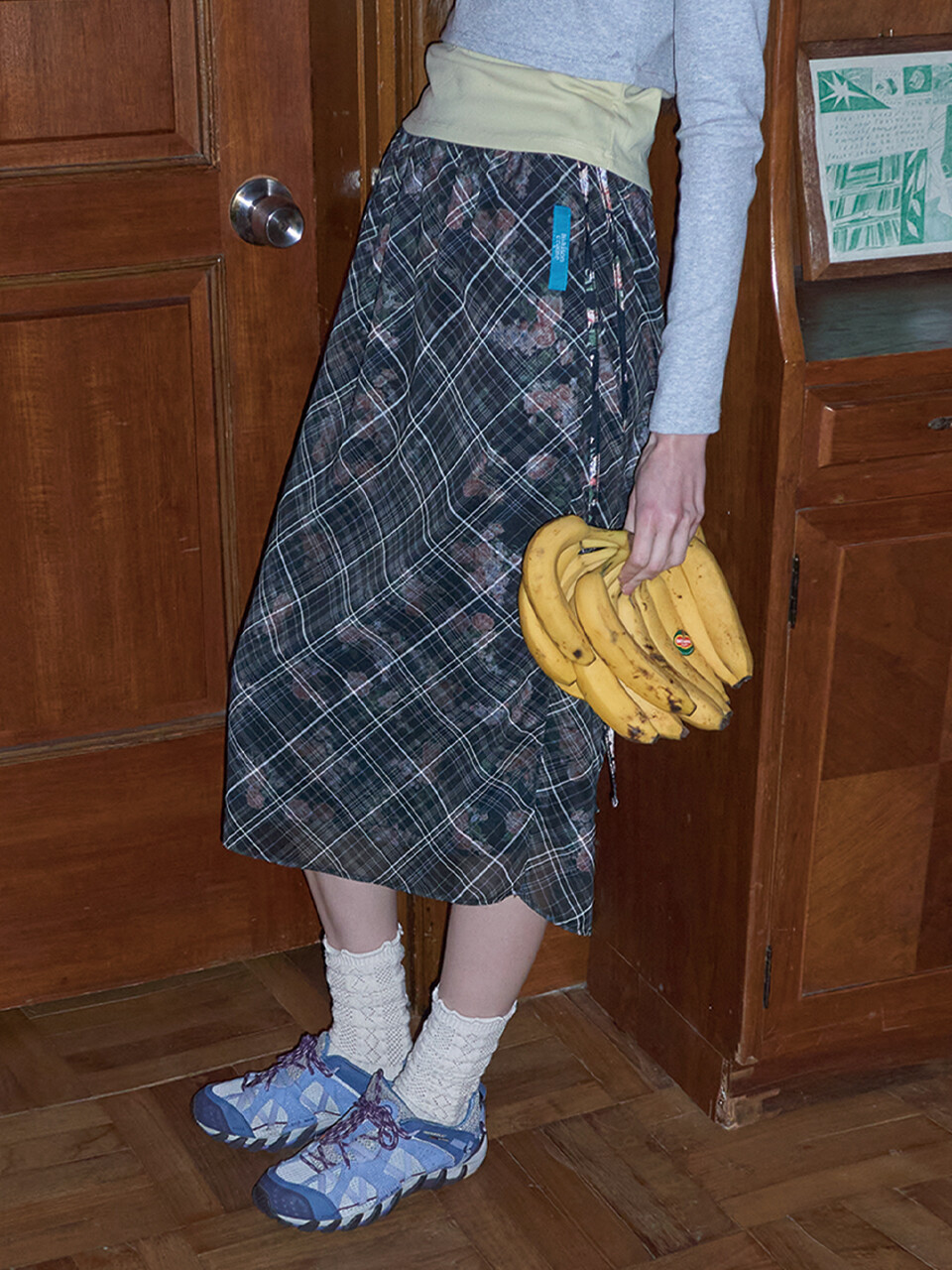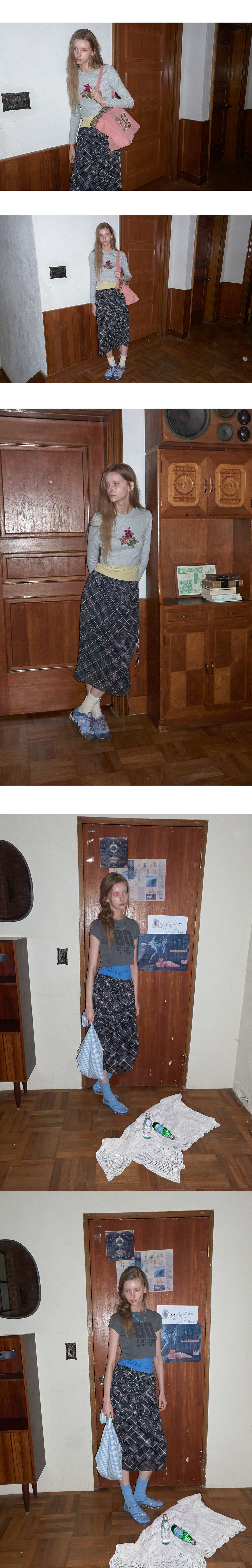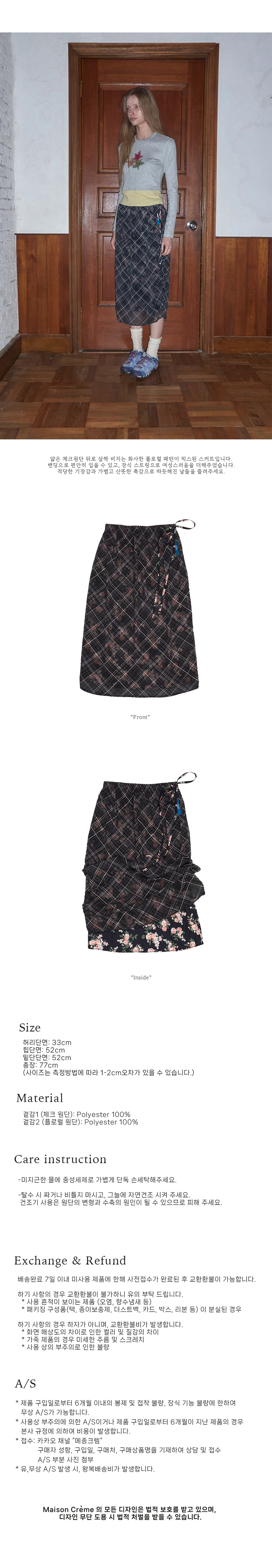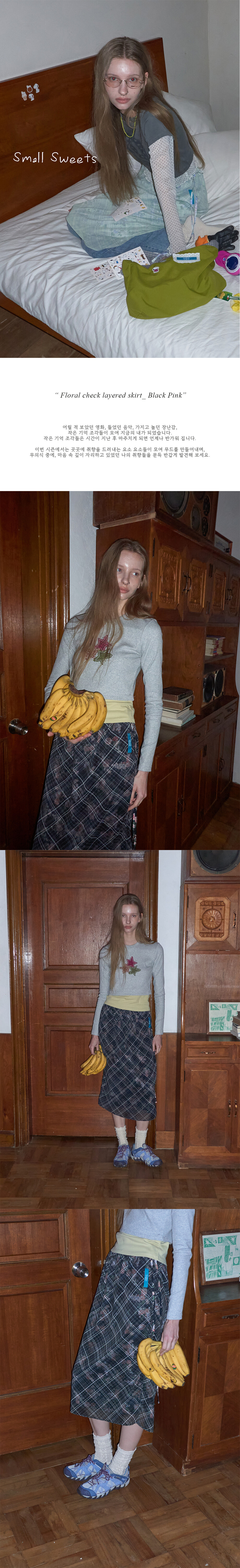 Floral check layered skirt_ Black Pink